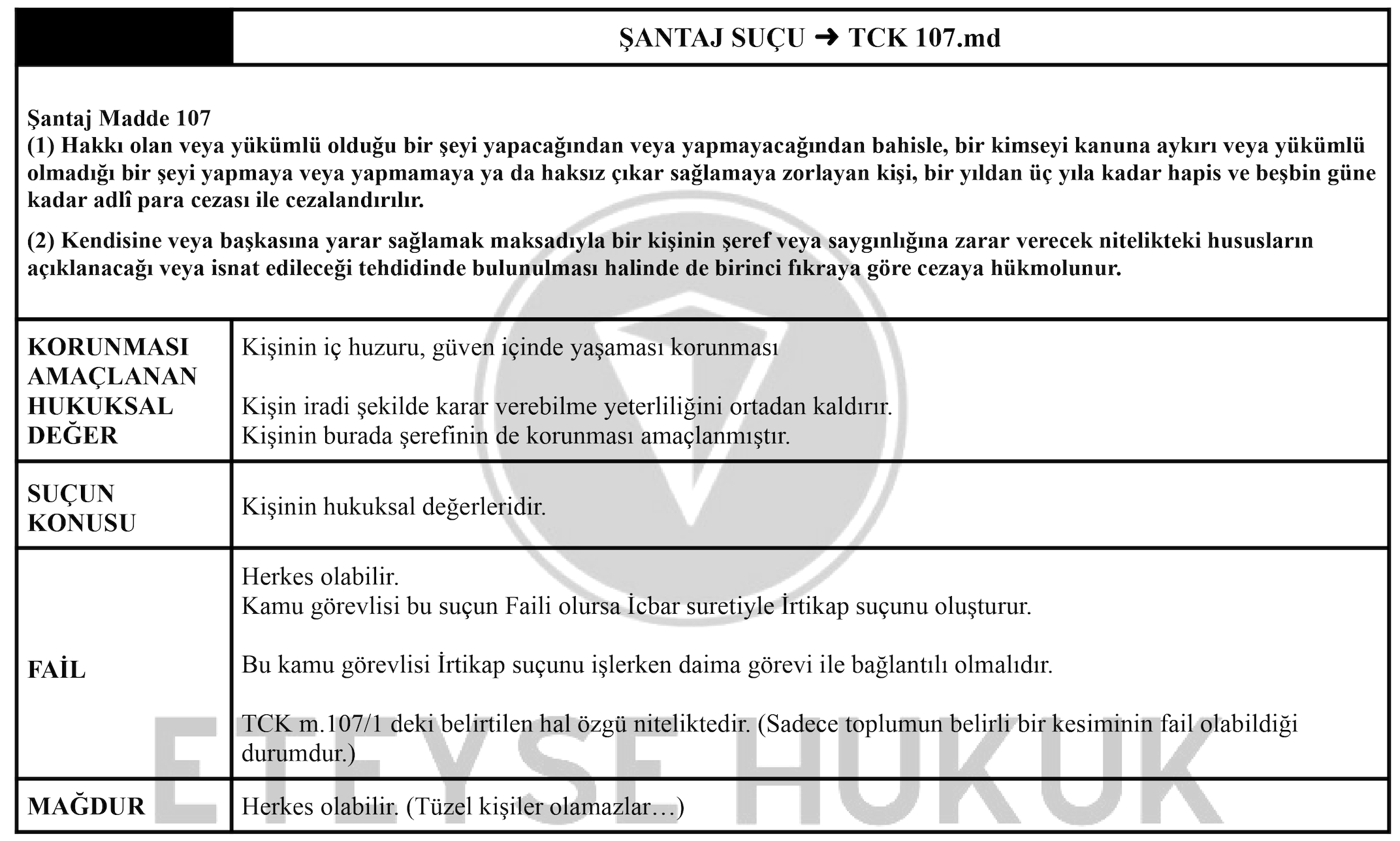 ŞANTAJ SUÇU İLE İLGİLİ HAP BİLGİLER